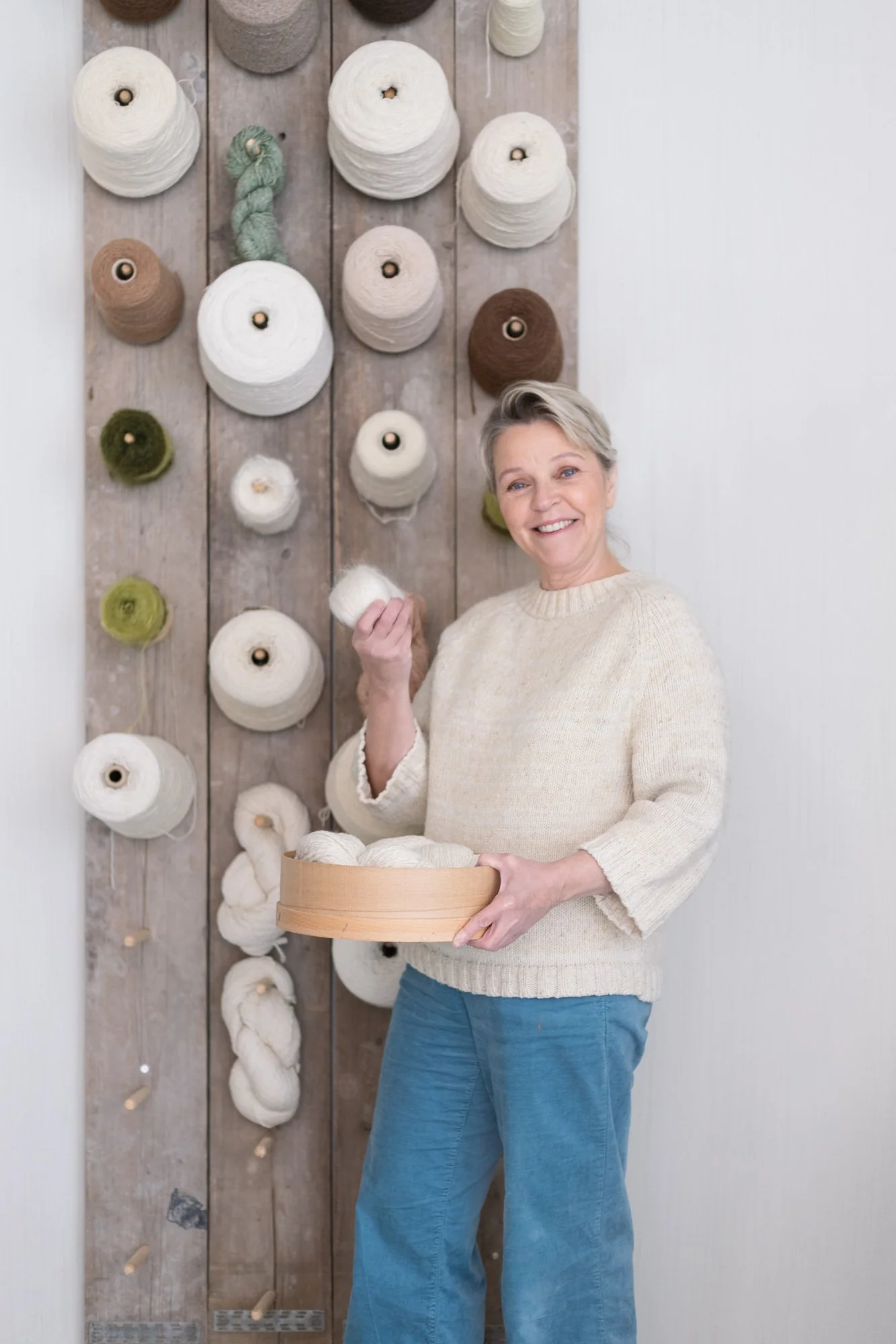 Atelier & Ko werkt uitsluitend met wol van Belgische en Ierse herkomst. Van schapenboeren tot makers: het atelier brengt iedereen samen die kiest voor kwaliteit, herkomst en ambacht.